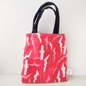 リバーシブルタイプのミニバッグで、表面はPOPなコミック柄、裏返すとニョロニョロ模様になっています。
