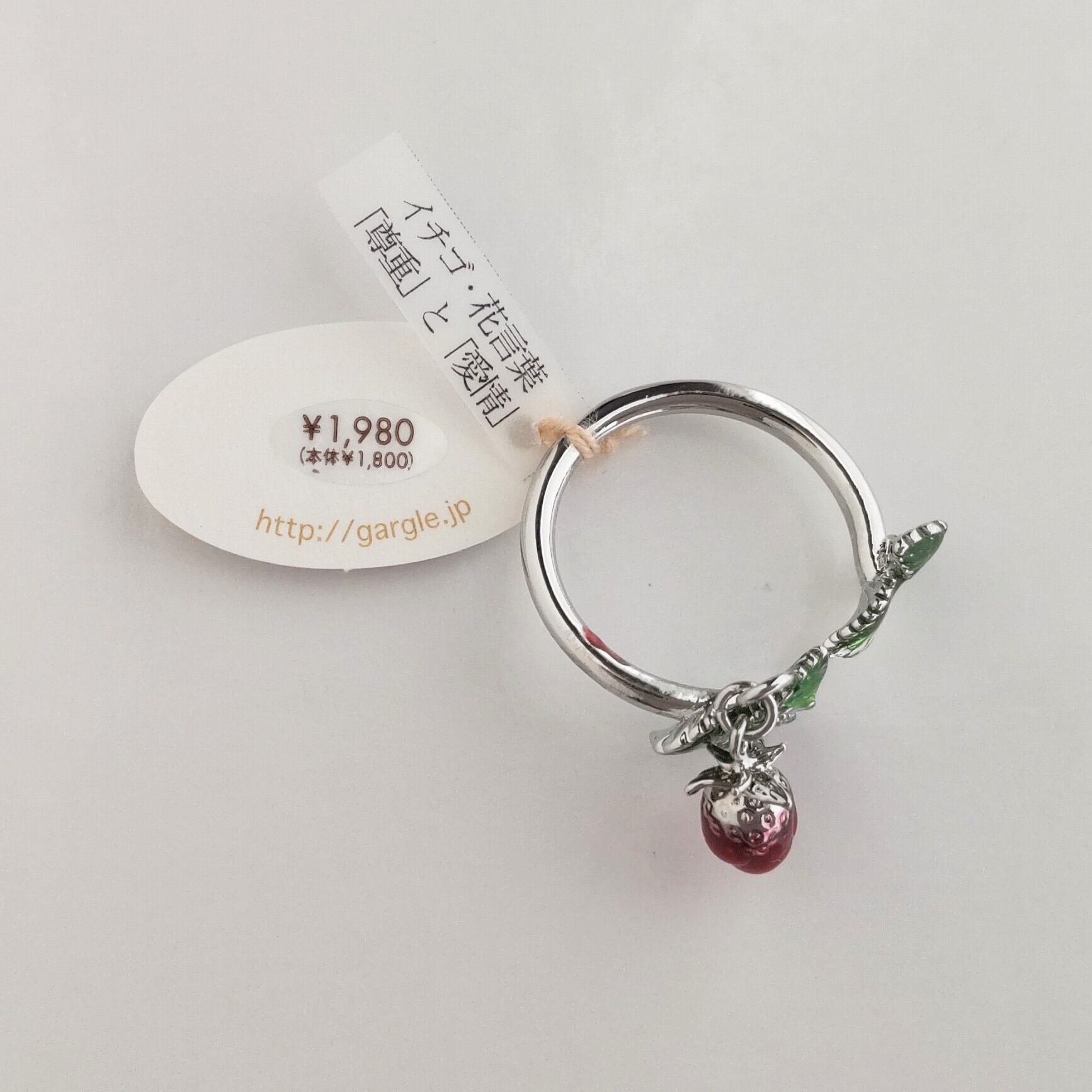 ゆらゆらと揺れる色鮮やかなイチゴがかわいいリングです。