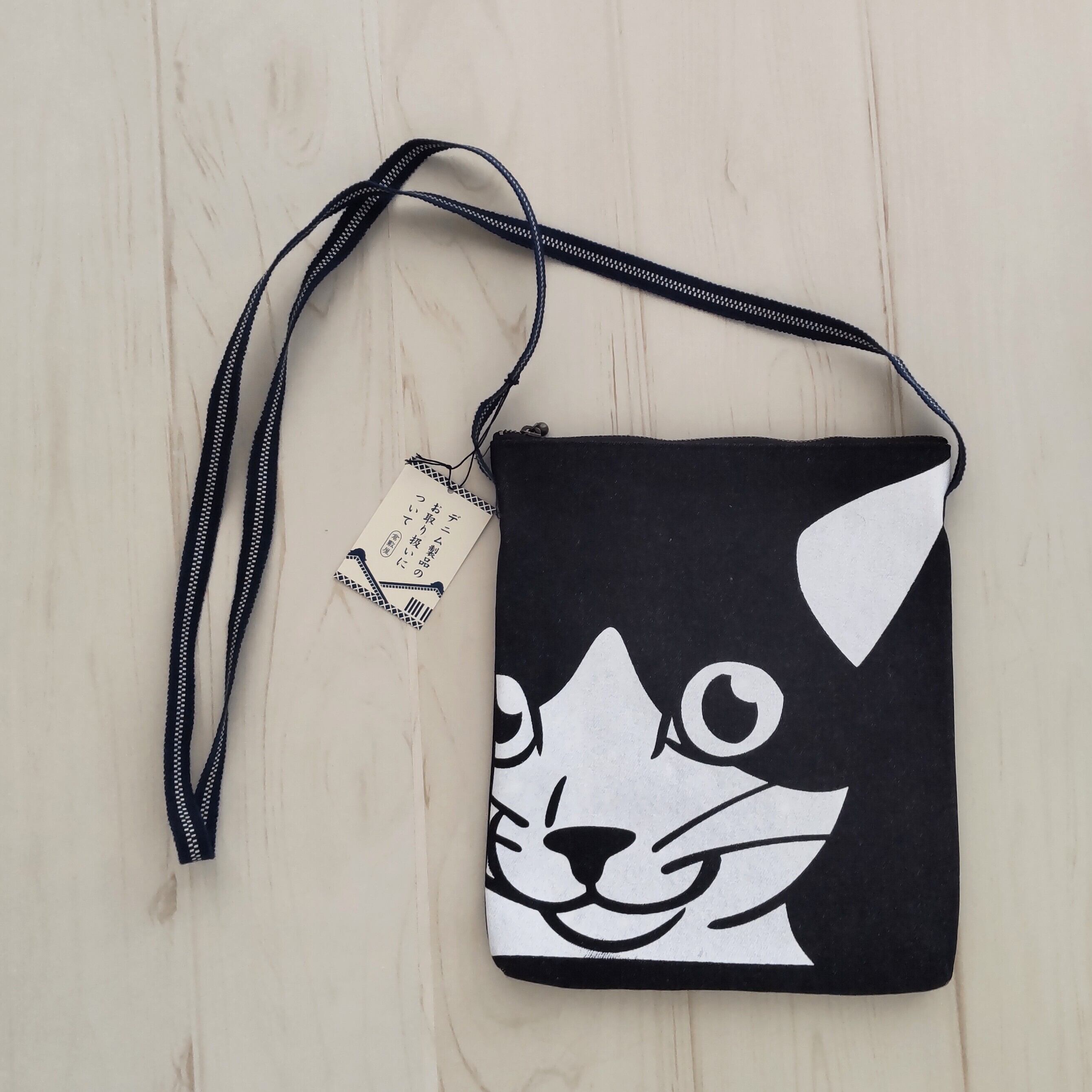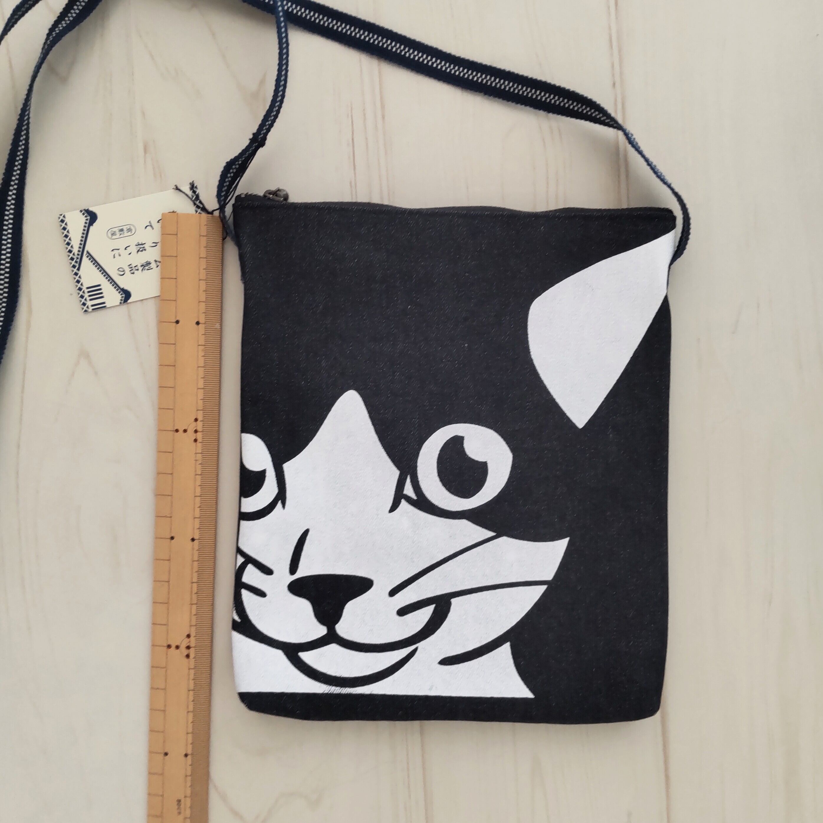 倉敷屋 顔インディゴ ショルダーバッグ 真田紐 猫 デニム
