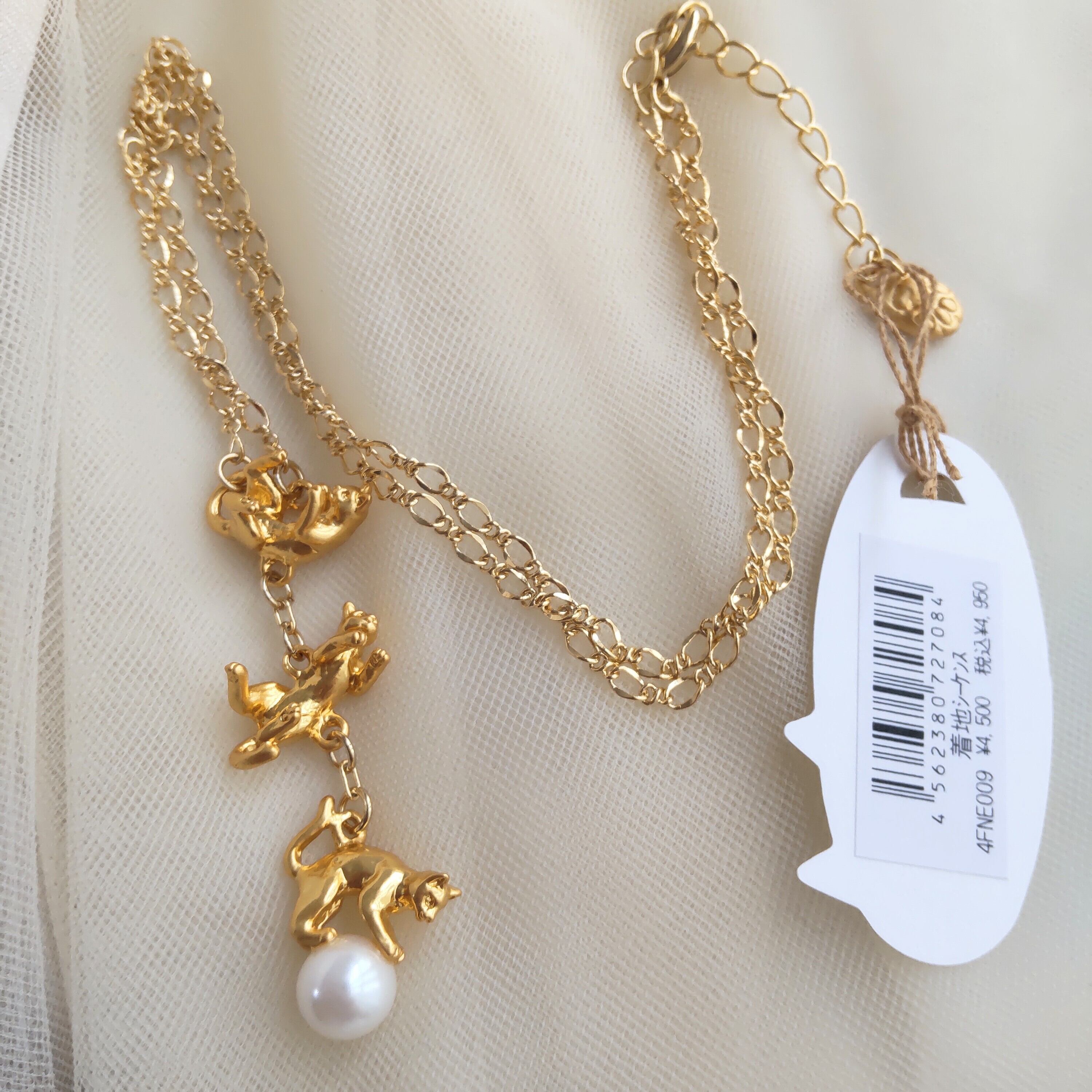 高いところから降りる瞬間、くるっと体を捻らせて得意げな顔で着地する猫のネックレス。