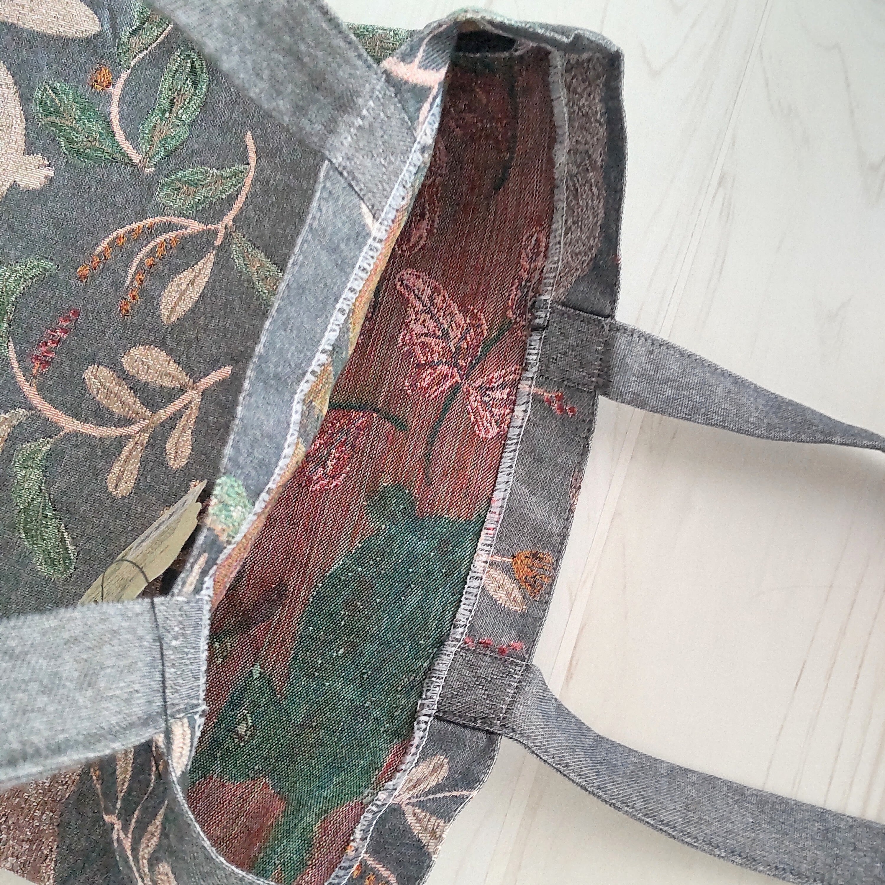 松尾ミユキさんの描く動物や植物をゴブラン織りの生地に落とし込んだトートバッグです。