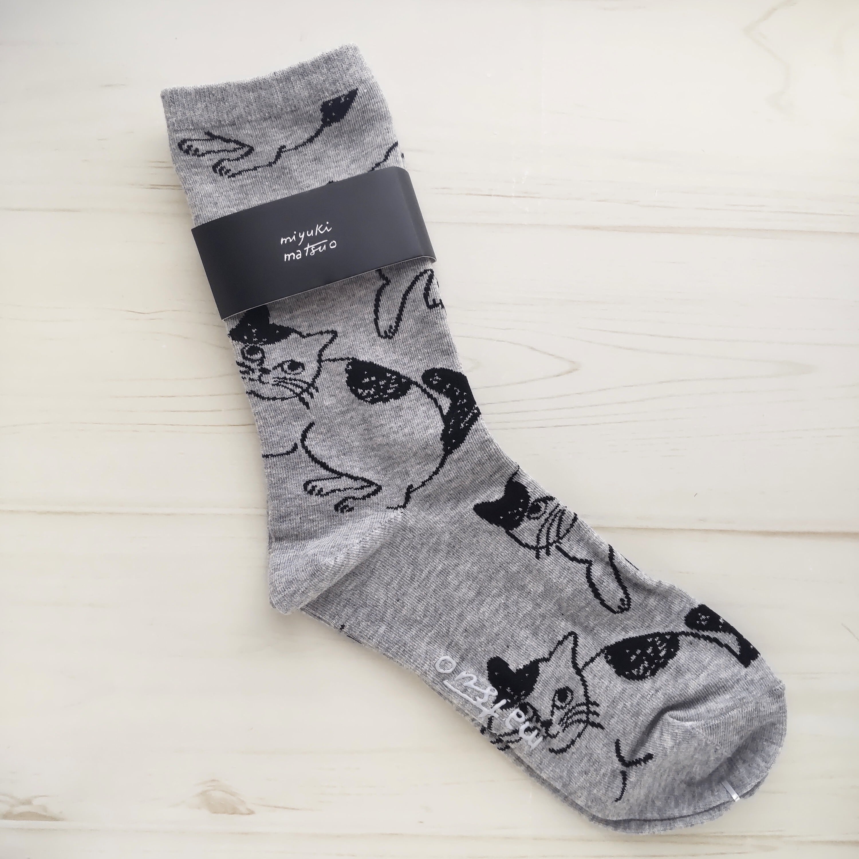 松尾ミユキ 靴下 レディースフリー 猫 Doux グレー