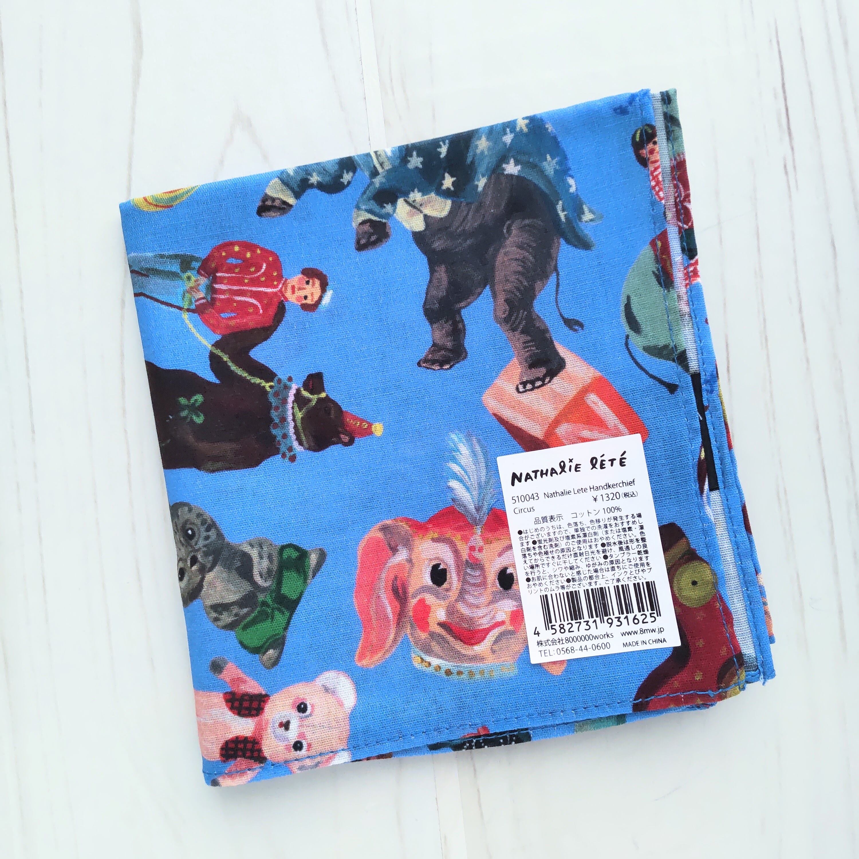 ナタリーレテ ハンカチ 50cm×50cmサイズ サーカス ブルー