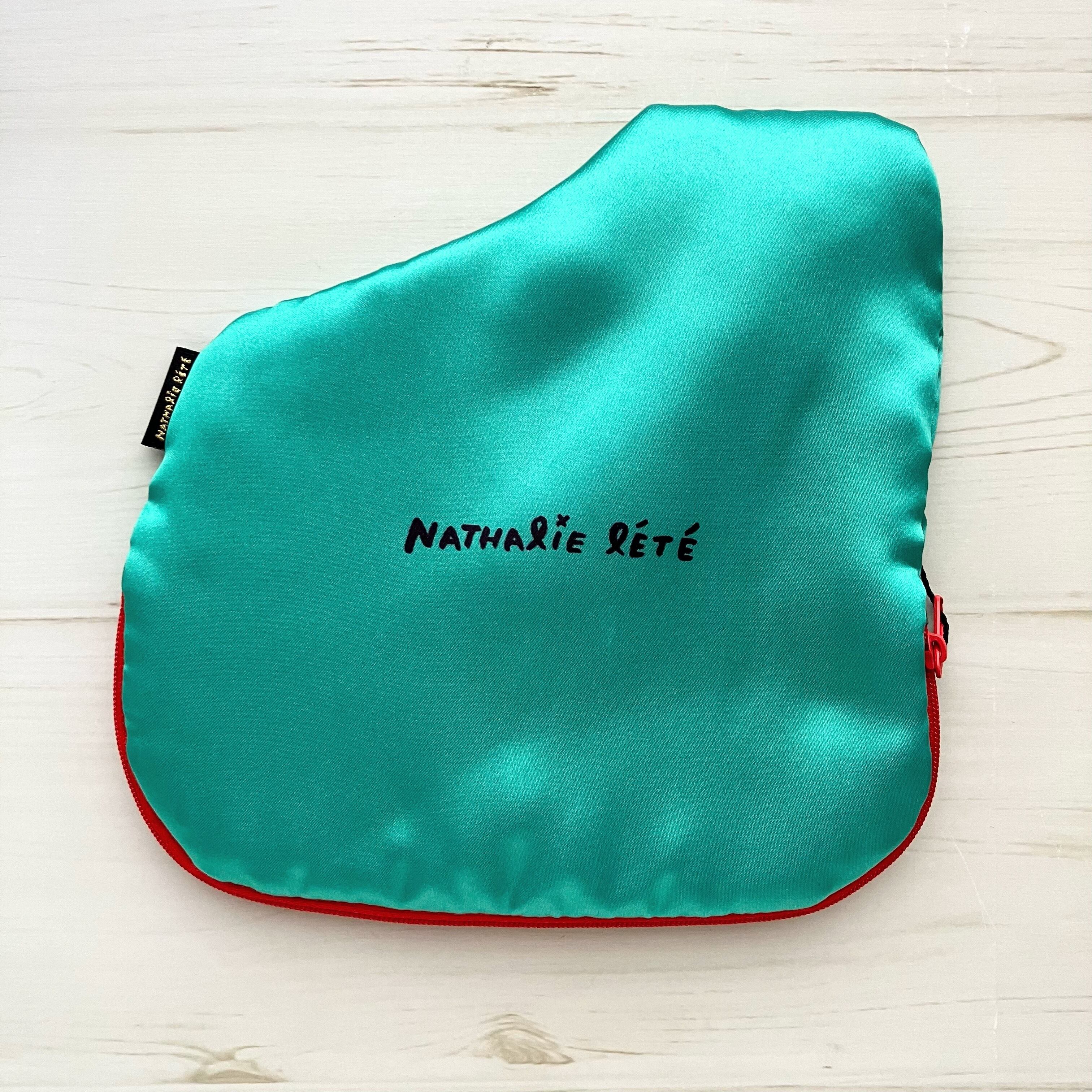ナタリーレテさんの描くキュートな動物や女の子が目をひくサテン生地のポーチ。