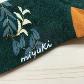 松尾ミユキさんの描くかわいい動物が後ろ側に織られた靴下です。