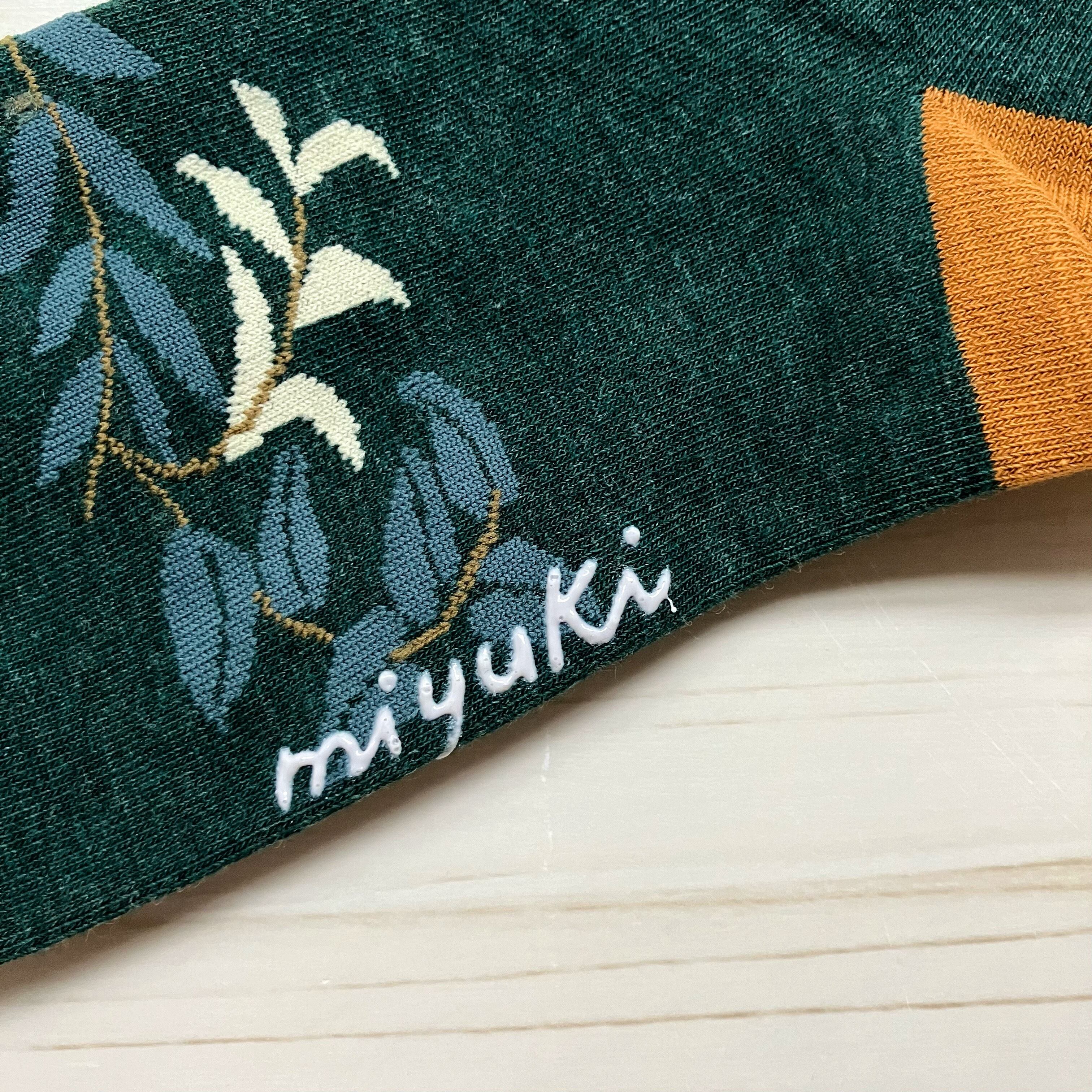 松尾ミユキ 靴下 レディースフリー Milo 猫 グリーン