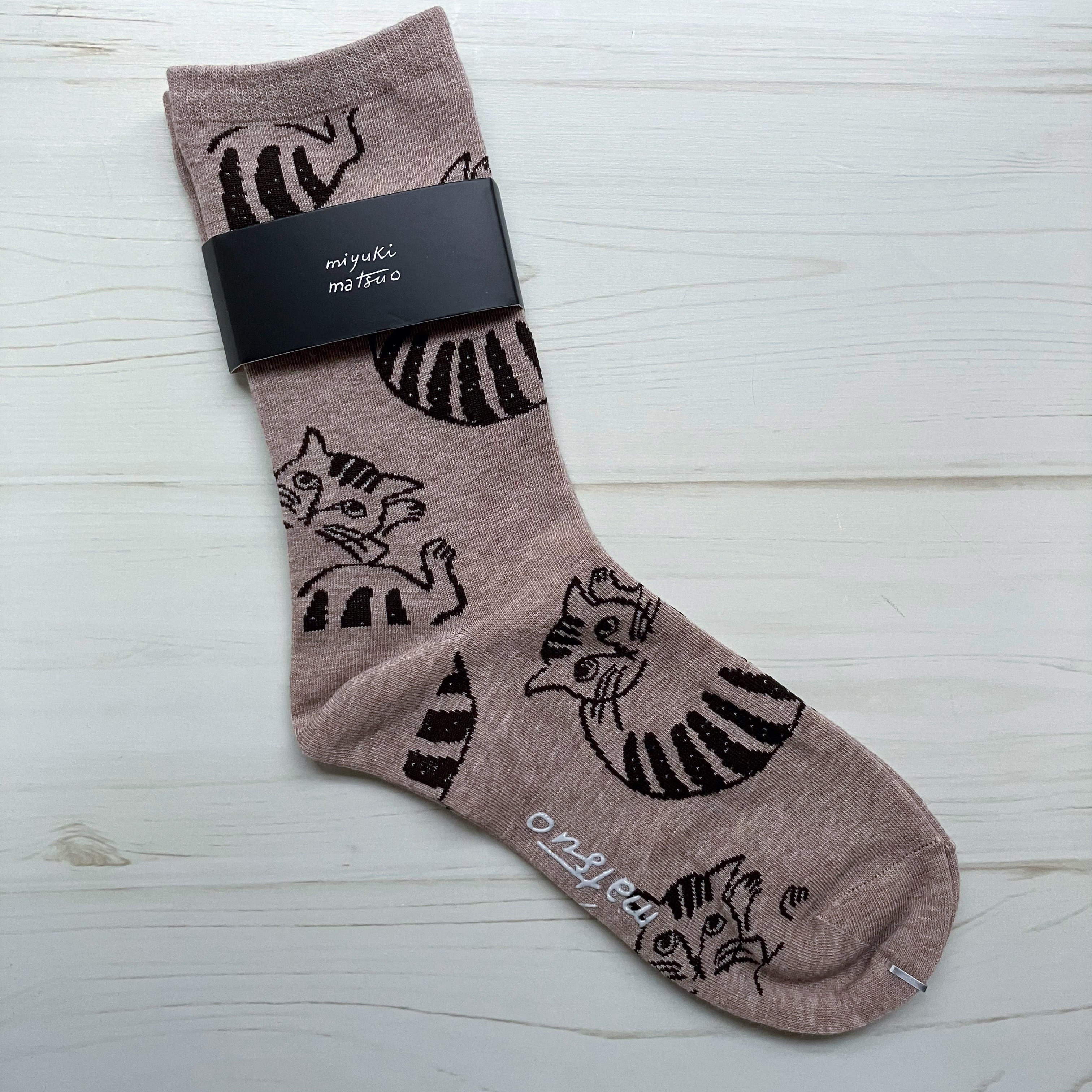 松尾ミユキ 靴下 レディースフリー 猫 Peony ベージュ
