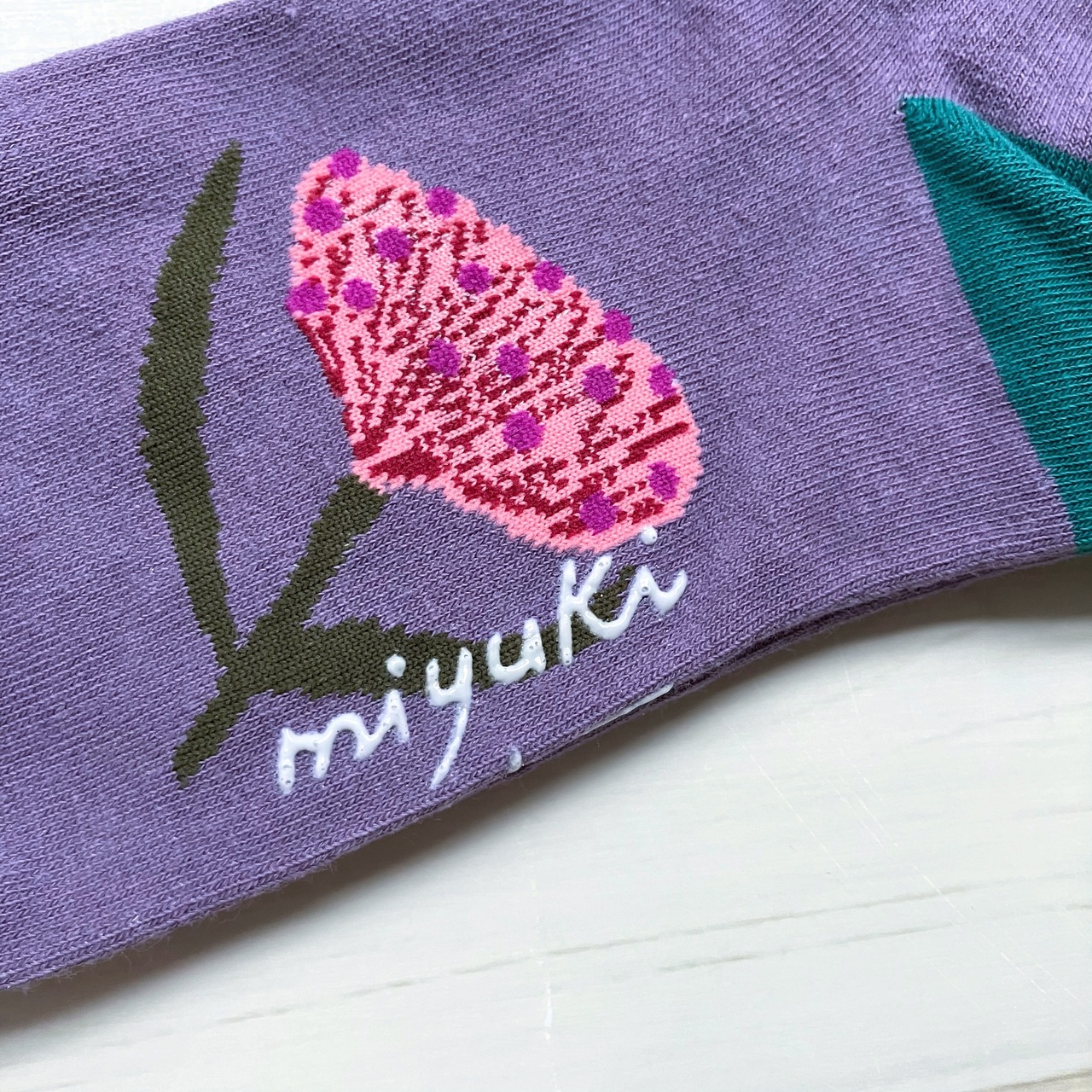松尾ミユキさんの描く植物を靴下に落とし込みました。
