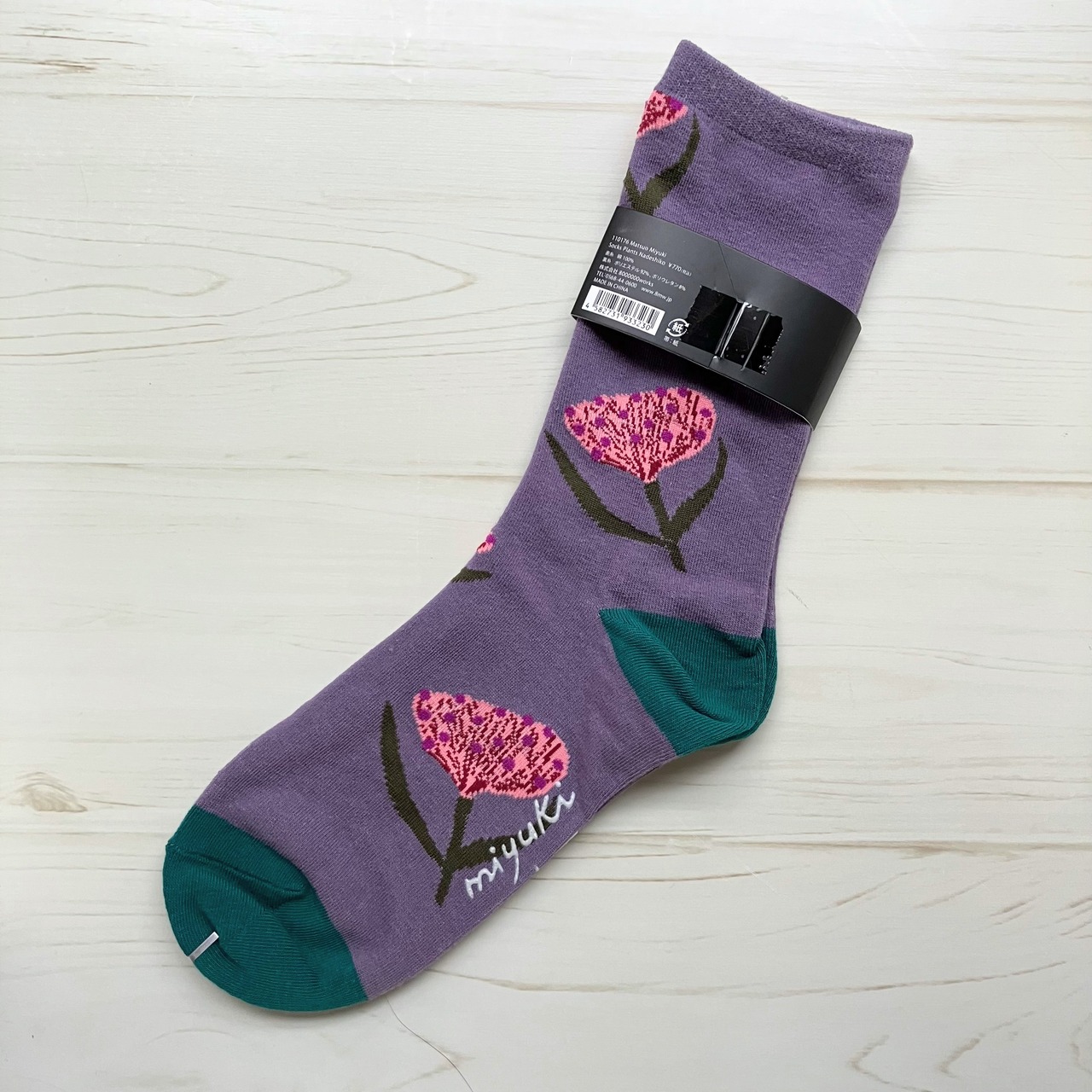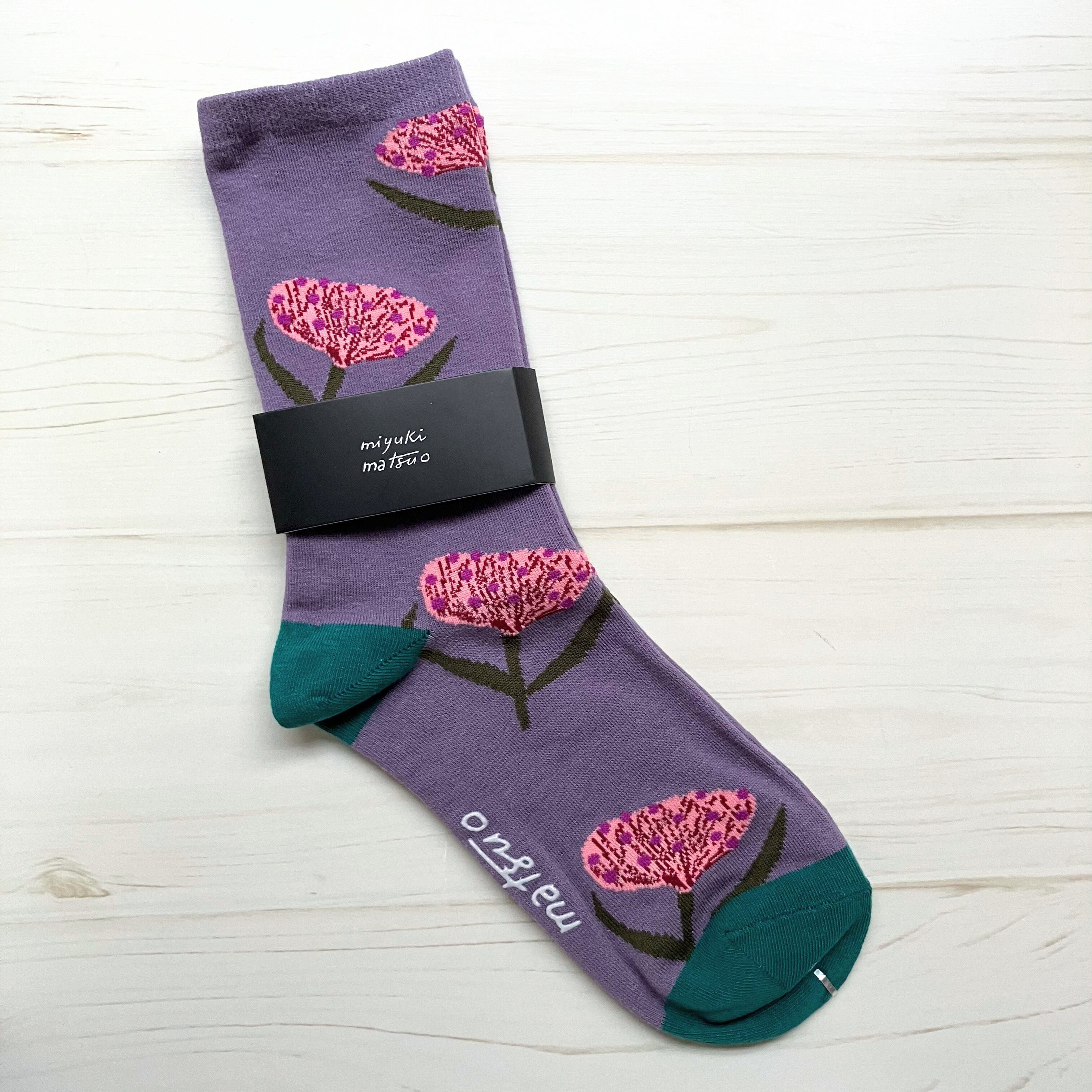 松尾ミユキ 靴下 レディースフリー 花 ナデシコ パープル