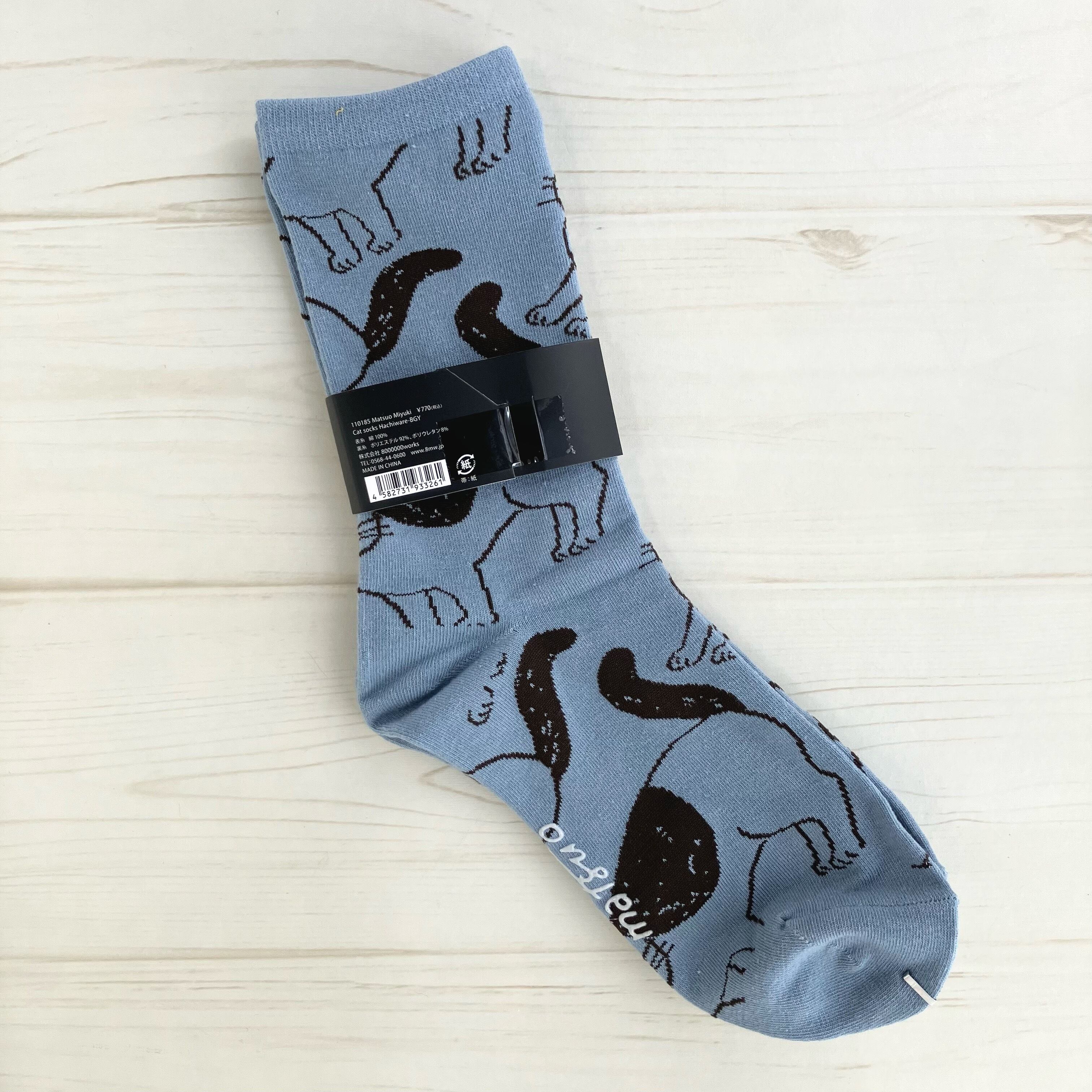 松尾ミユキ 靴下 レディースフリー 猫 ハチワレ ブルーグレー